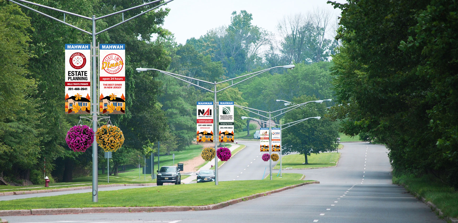 Through our Community Banner Program, local streets are transformed into vibrant displays of pride and business visibility.